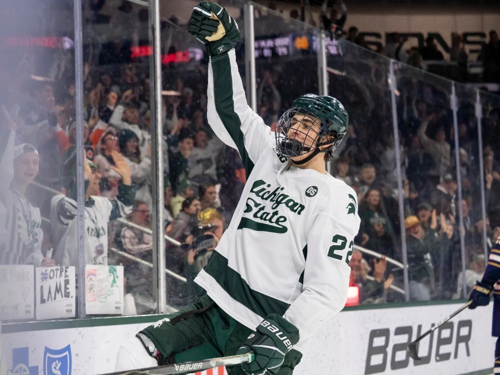 After a heartbreaking overtime loss on Saturday night to Wisconsin, Michigan State forward Porter Martone has officially signed his NHL contract.